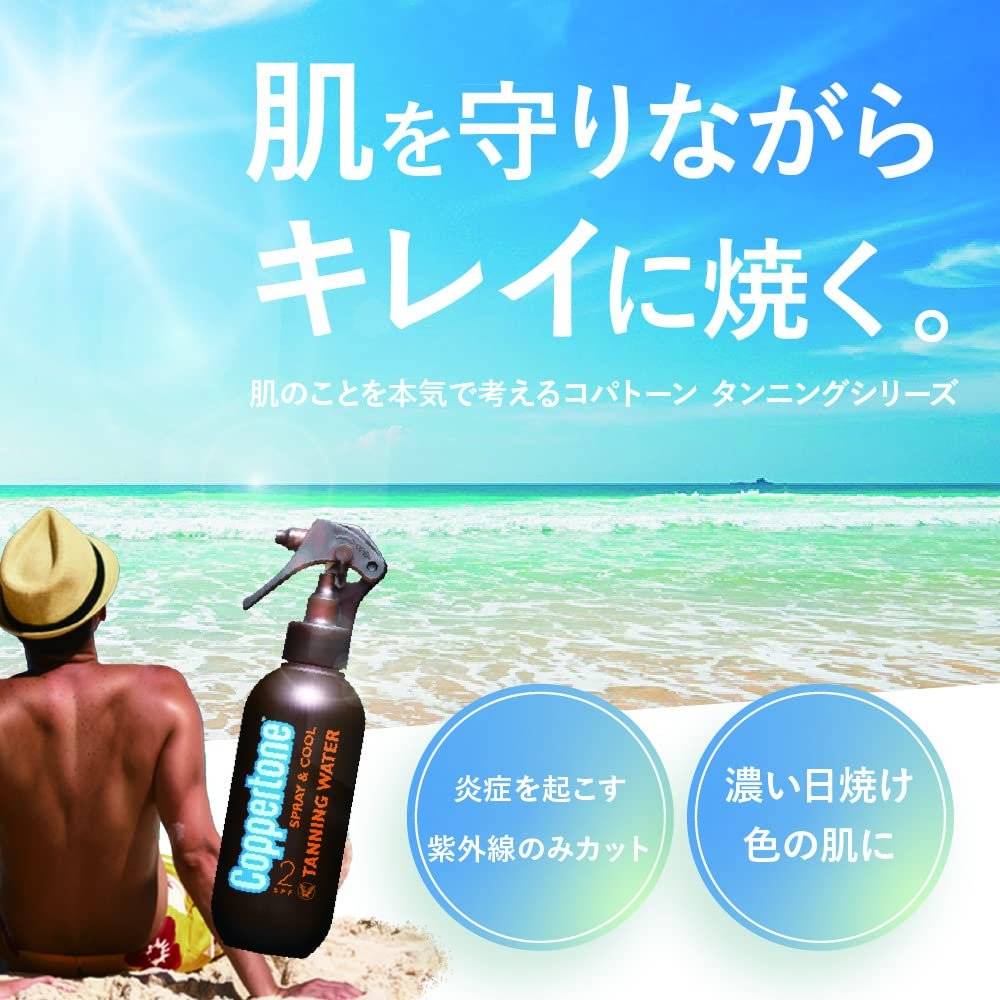 易於大面積塗抹。僅阻擋引起發炎的紫外線,留下深古銅色皮膚。含有蘆薈和胡蘿蔔成分,保持皮膚濕潤。不黏膩,使用舒適。淡淡的椰子香味。